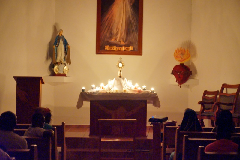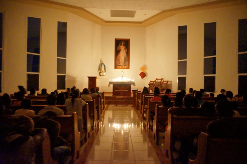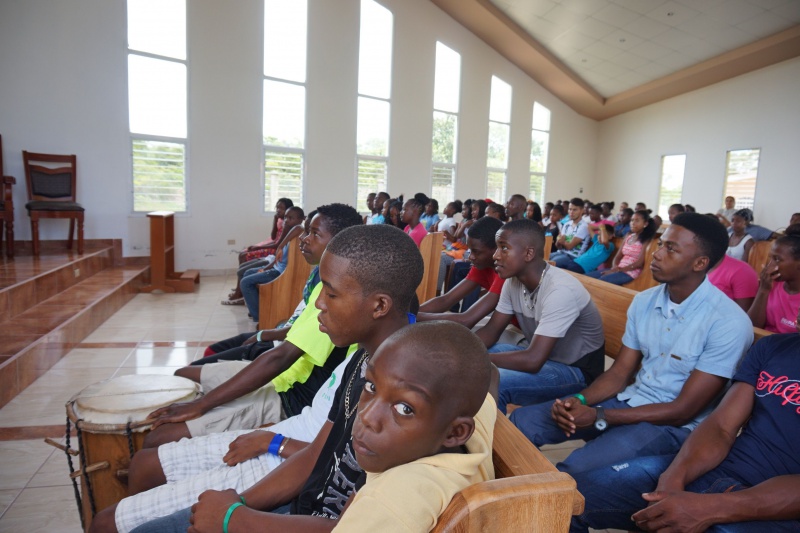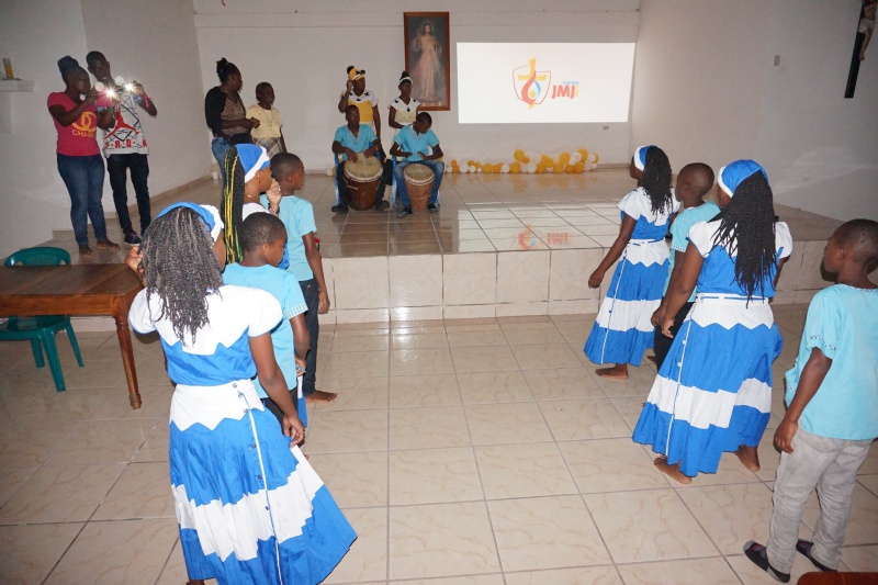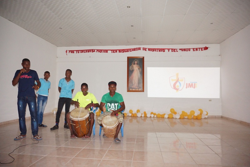 Potom nasledovalo už spomínané svetové stretnutie mladých a keďže z našej farnosti sa nikomu z mladých nepodarilo ísť tam, pripravili sme mladým takpovediac náhradu u nás, v Centre Božieho Milosrdenstva v Sangrelayi. Z celej farnosti sa zišlo okolo 110 mladých. Úžasné bolo sledovať ako niektorí prišli peši až z 20 km vzdialenej dedinky, iní z bližšia. V rámci programu sme slávili svätú omši, pri ktorej nám kázal sám svätý otec František. Bol to videozáznam jeho katechézy zo SDM doplnený dialógom s mladými. Vyzval mladých, aby nežili život akoby ležiac v pohodlí na gauči, aby neboli ohlúpnutí a prispatí. Majú byť motiváciou a povzbudením pre dospelých a ako budúcnosť ľudstva majú hľadať možnosti ako zlepšiť stav ľudstva. Svätý otec zdôraznil potrebu zanechania trvalej stopy v tomto svete. Nasledovali svedectvá a téma na rozjímanie, naučenie a radostný spev hymny SDM, prijatie pozdravu od slovenských mladých zo Združenia mariánskej mládeže a nakoniec hry, pri ktorých mohli mladí vyhrať ceny priamo zo SDM v Krakove – batoh, šatku, pršiplášť a iné… Podvečer patril kultúrnemu programu, ktorý si pripravili mladí z niektorých dedín a nakoniec sme sa išli poďakovať Pánovi počas eucharistickej adorácie.