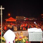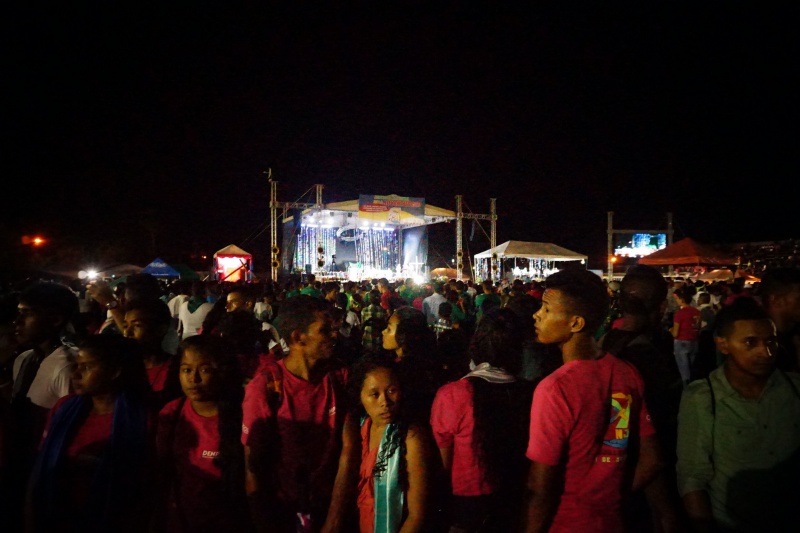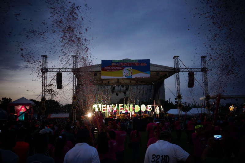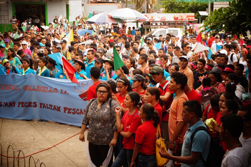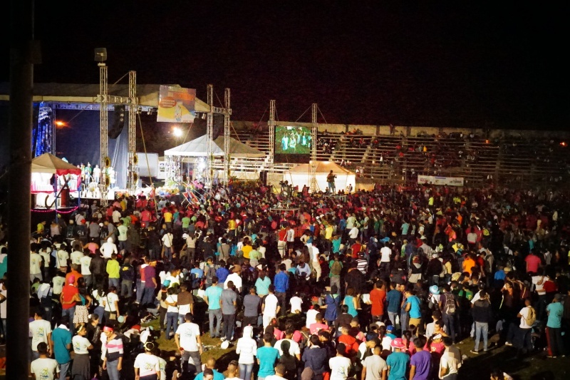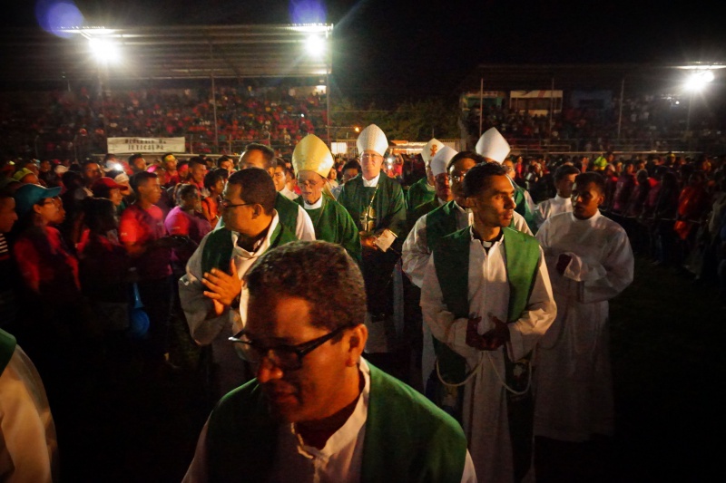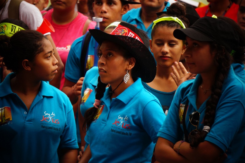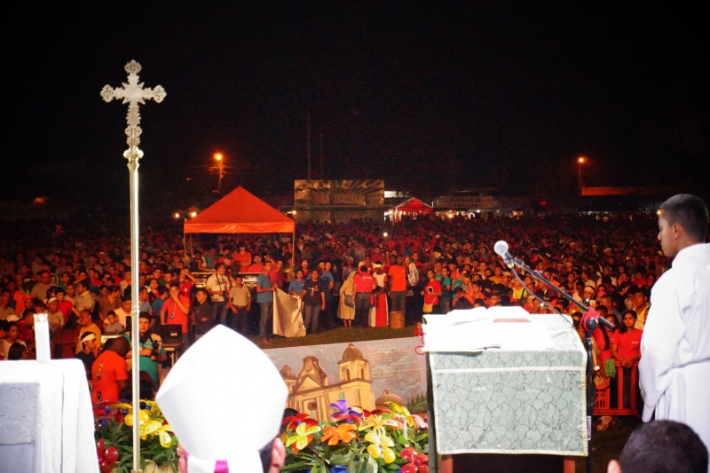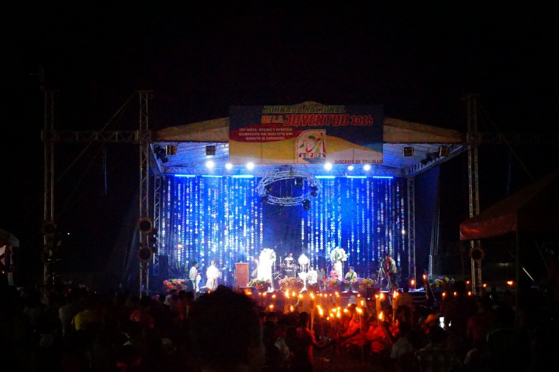 Na JNJ sme potom cestovali spoločne tromi autobusmi. Bolo nás zhruba 180 z farnosti. Stretnutie začalo spoločným programom na hlavnom námestí v mestečku Tocoa, kde sa jednotlivé farnosti a diecézy predstavili v kultúrnom programe. Potom sme spoločne putovali na druhú stranu mesta na futbalový štadión, ktorý sa za malú chvíľu úplne zaplnil. Večernou vigílnou svätou omšou, ktorú celebroval náš diecézny otec biskup Luis Solé Fa, CM, sme začali večerný program. V rámci svätej omše sa do asistencie zapojili aj naši mladí, zvlášť potom garifunčania svojimi tancami, bubnami a spevmi. Potom nasledovali rôzne predstavenia a dramatizácie, ktoré predstavovali rôzne ľudské hodnoty a mali povzbudiť mladých k nasledovaniu dobrých a vysokých ideálov. Mnohí z nich sa aj vyspovedali a niektorí kňazi spovedali až do tretej hodiny ráno. V tom čase sa už štadión pomaly menil na obrovskú posteľ pod holým nebom. Spánok však väčšine nevydržal príliš dlho, pretože takmer všetci sa už o piatej ráno zberali domov.