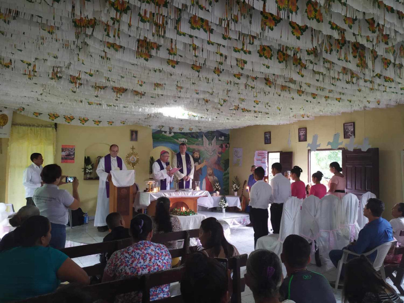 V septembri sme dokončili stavbu nového kostola zasvätenému Božskému Srdcu Ježišovmu v najmenšej komunite farnosti zvanej Sagrado Corazón de Jesús (Najsvätejšieho srdca Ježiš). Taktiež sa nám s Božou pomocou podarilo v tomto týždni nainštalovať nové drevené okná na kostolíku. Celkové dokončenie vnútorného zariadenia kostola, bude naďalej pokračovať.