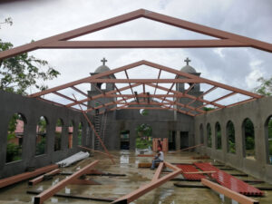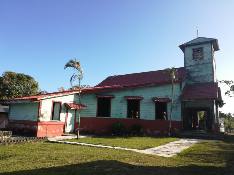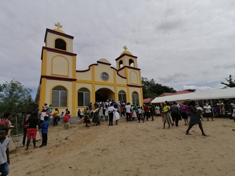 Starý farský kostol sme boli nútení zbúrať pred troma rokmi pretože už bol v dezolátnom stave. Bol totiž postavený z veľkej časti z dreva a hlavné nosníky už boli prehnité. Stavba sa teda začala po Veľkej noci v roku 2019. Najprv bolo treba vyčistiť pozemok, na ktorom stál starý kostol. Napriek tomu, že bol zväčša z dreva, základy mal veľmi dobré, pevné a hlboké. Niektoré sme aj nechali na svojom mieste a sú ukryté pod podlahou nového kostola. Stavba prvé mesiace napredovala dobre, až kým pandémia nezastavila všetky práce na dlhé mesiace. Pred Vianocami 2020 sa podarilo urobiť strechu aj napriek tomu, že sa práve prehnali cez Honduras dva silné hurikány štvrtej kategórie Eta a Iota, ktoré napáchali v Karibiku obrovské škody. V roku 2021 sa pokračovalo s maľovkami, dorábkou schodov a chodníka. Založili sa okná, ktoré mali aj novátorské detaily na uľahčenie otvárania (viacero ľudí si už obkukalo náš patent, aby si aj oni v dome urobili rovnaký štýl otvárania týchto sklenno-žalúziových okien). Dvere nám vyrobil miestny majster z dreva kaoa, ktoré je veľmi trvácne a kvalitné a je z miestnych lesov. Veľkým dobrodružstvom bola výroba podhľadu v kostole z kaziet. Keďže sme chceli zachovať nejaké to kultúrne prepojenie so starým kostolom, strop sme spolu s veľkým množstvom mladých z dediny maľovali v štýle malieb použitých v predchádzajúcom chráme. Skoro týždeň prichádzala mládež maľovať behom svojich prázdnin podhľad v kostole a hneď po jeho nainštalovaní bola vidieť v tvárach radosť a hrdosť na dobre vykonané dielo. Aj napriek tomu, že ešte stále v dedine niet elektriky, urobila sa v kostole elektroinštalácia. Predsa len niekedy treba v kostole svietiť alebo napájať ozvučenie, tak sa to zatiaľ provizórne bude riešiť podľa potreby agregátom. Veľký problém nám urobilo počasie a pandémia. Kvôli nedobrému počasiu, množstvu dažďa, následných horúčav a možno aj nie profesionálnej odbornosti niektorých robotníkov, sa nám rozpráskala betónová podlaha, a preto sa musela urobiť nová.