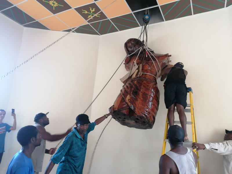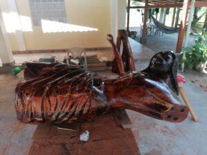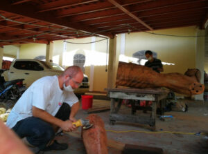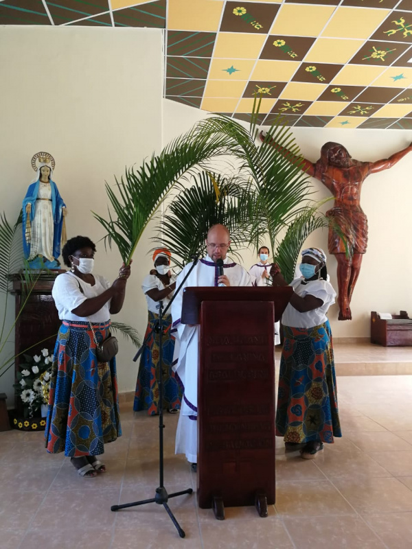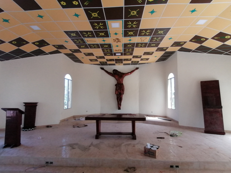 Dlažba by sa nám totiž vypráskala tiež. A práve s dlažbou sme nakoniec mali najväčšie problémy. Kvôli pandémii a následnej kríze kontajnerovej lodnej dopravy nebolo možné doviesť dlažbu z krajín, kde ju vyrábajú. Nakoniec sa nám podarilo zohnať dlažbu z Guatemaly (keďže Honduras dlažbu nevyrába) a tá je najbližšie. Pohroma však zažehnaná nebola, pretože najprv sa pokazila výrobná linka vo fabrike a následne sa pokazil kamión, ktorý nám mal dlažbu priviesť. Podarilo sa nám zohnať iný kamión od našich farníkov, no čuduj sa svete, aj ten sa pokazil na pol ceste už s naloženou dlažbou. Keď dlažba konečne dorazila, pri jej vykladaní sa strhla taká silná búrka, že rozmočilo takmer všetky krabice. Keď už všetko vyzeralo pozitívne, zostal pozitívny na covid aj remeselník, ktorý mal lepiť podlahu. Keďže v tom období tu mal covid takmer každý, hneď na druhý deň prišiel sám od seba pracovať. Nebolo to však všetko, pretože zase prišli také silné lejaky, že sa na svojej motorke nevedel nejaký čas k nám dostať. Ešte desať dní pred posviackou sme si neboli istí, či to všetko stihneme práve kvôli komplikáciám s dlažbou. Od nej totiž záviselo upratovanie, čistenie, dorábky, vnútorná maľovka a iné. Obrovskou výzvou bola tiež oprava nadrozmerného korpusu z kríža v areáli nášho centra. Tento korpus je z dreva a je vysoký štyri metre. Keďže však je v blízkosti mora a vystavený vplyvom počasia, aj napriek epoxidovej ochrane sa v posledných mesiacoch veľmi zhoršoval jeho stav. Bolo nevyhnutné ho zložiť z kríža a opraviť. Božia Prozreteľnosť zariadila, že stena presbytéria v novom kostole je presne prispôsobená veľkosti kríža. A teda po jeho rekonštrukcii a po urobení formy z epoxidu sme dali korpus na stenu presbytéria v novom chráme. Samotné ruky a nohy korpusu neboli veľmi ťažké, pretože už boli slnkom vysušené, ale telo váži okolo 300 kilogramov a museli sme ho niesť asi ôsmi chlapi. Vďaka Bohu sa dielo podarilo. Na náš kríž, v Centre Božieho milosrdenstva dáme korpus z formy, ktorú sme zobrali z originálu. Teraz by mal snáď vydržať oveľa dlhšie.