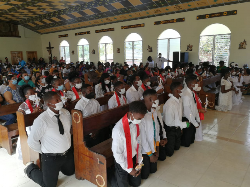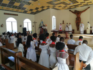 Slávnosť posviacky kostola sa niesla v rodinnom duchu, kedy prišli veriaci takmer zo všetkých obcí a dedín našej farnosti. Niektorí cestovali viacero hodín a dokonca poprichádzali ľudia aj z iných farností. Nad slávnosťou sa vznášala hrozba obrovskej búrky, ale Pán nad nami držal ochrannú ruku. Nespadla ani kvapka, no zatiahnutá obloha vytvorila príjemný chládok. Náš diecézny otec biskup Luis Solé Fa, vincentín zo Španielska, ktorý na Hondurase pôsobí už vyše 40 rokov, spolu s posviackou chrámu vyslúžil aj sviatosť birmovania našim mladým vo veľmi príjemnej a rodinnej atmosfére. Celé toto dielo sa začalo budovať ešte keď bol farárom otec Jozef Noga, CM a aj napriek pandemickým zdržaniam sa po troch rokoch (akoby 3 dňoch v hrobe) podarilo „vzkriesiť“ nový farský kostol. Dúfame, že spolu s kostolom sa podarí aj znovu rozbehnúť pastoráciu aspoň v tej miere ako to bolo pred pandémiou, pretože asi ako na celom svete, aj v Hondurase sociálny dištanc narobil veľkú galibu aj v duchovnom živote. Ťažko je z príjemnejšieho prejsť do konštruktívnej odpovede na naliehavé témy života, no treba znovu objaviť to, že najväčšia moc je rozkázať samému sebe konať dobro a uskutočniť ho. Tak ako Pán Ježiš z nepohodlia kríža odpúšťa a umiera za spásu nás všetkých, sme aj my pozvaní budovať tento chrám, ktorým je Jeho Cirkev. Veď z Jeho prebodnutého boku sa zrodila.